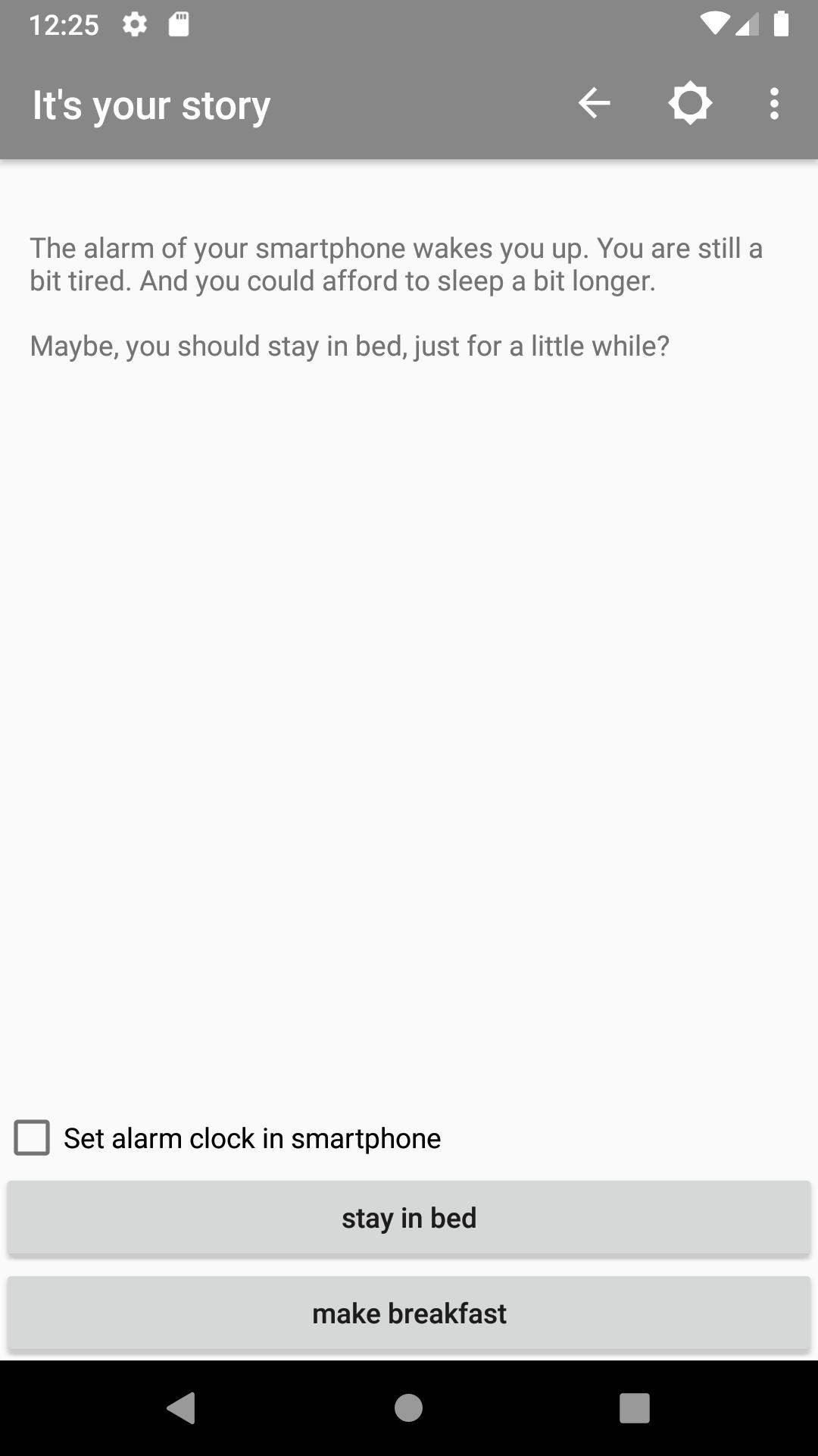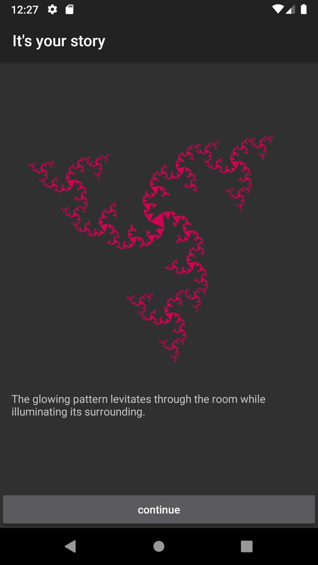 ฉันกำลังเขียนโปรแกรมแอพนี้ในเวลาว่างและไม่ทำเงินใด ๆ กับมัน จะไม่มีการเพิ่ม ไม่มีในการซื้อแอพ และเนื่องจากเป็นการผจญภัยข้อความ "เพียงแค่" ฉันไม่จำเป็นต้องได้รับอนุญาตจากอุปกรณ์ของคุณ